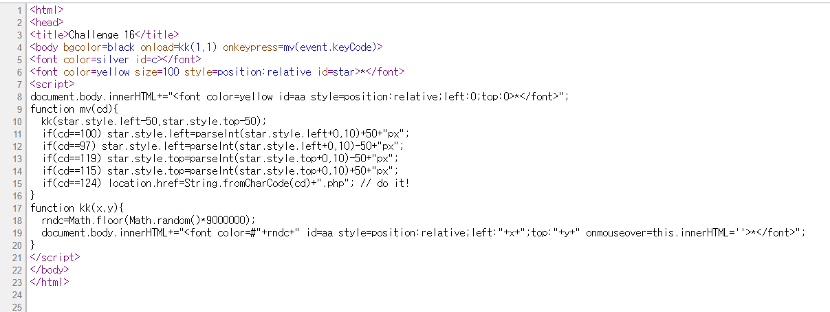 각각 d, a , s, w이므로 눌러보면 큰 *이 이동하는 모습을 확인할 수 있다.