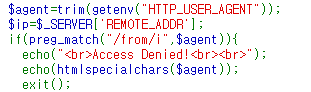 getenv("HTTP_USER_AGENT")는 접속한 컴퓨터의 웹브라우저 정보를 얻어오는 함수다.